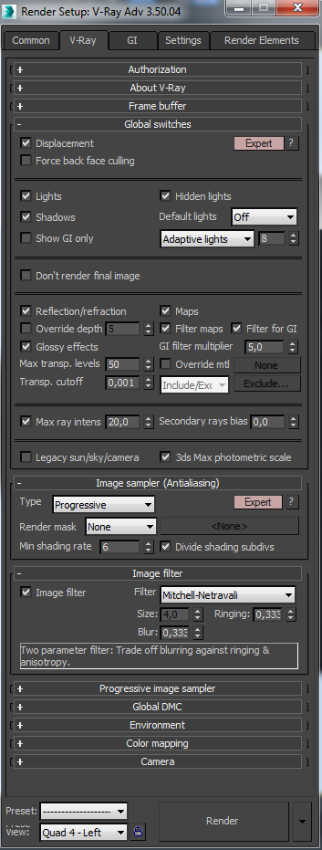 Как оказалось, Progresive шикарная вещь для предварительного рендера, уже секунд через 15 можно увидеть, как оно примерно будет.