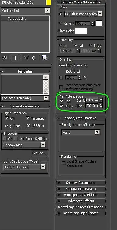Так бывает если у вас единицы измерения установлены в mm, а объекты большие ~5-10 m. Для того чтобы освети ть такой объект светильник должен быть на большом расстоянии. Но у менталовских ИС по умолчанию ставит параметр Far Attenuation 200. Т. е. когда единицы в мм свет пропадает на расстоянии 200мм от источника. Есесственно если у вас источник хотя бы в метре от объекта вы ничего не увидите.