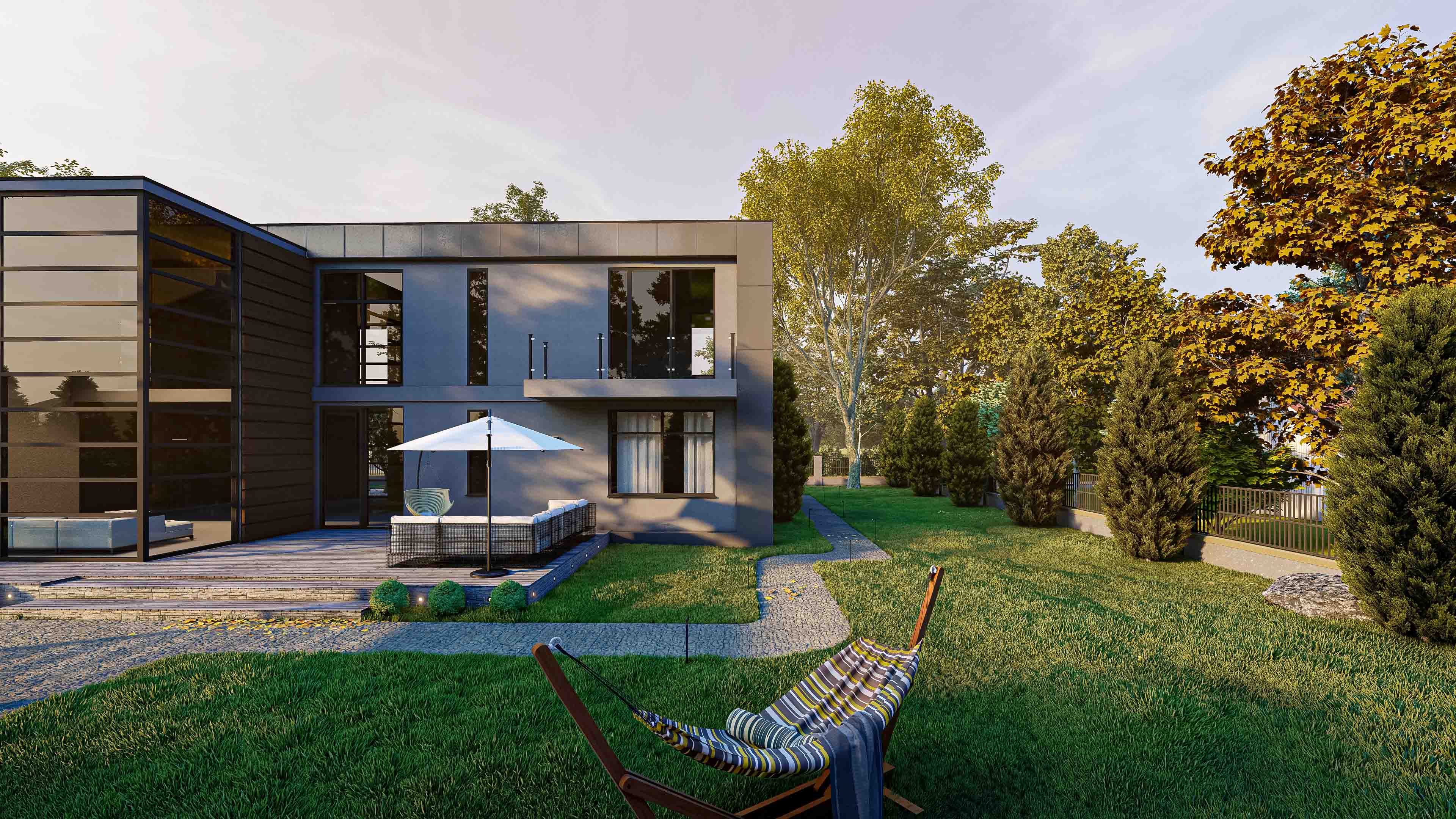 Из вводных нужно отмоделить участок, 40 соток ориентировочно, на участке стоит частный дом, модель дадут(болванка без тектур из архикада)на территории стоит небольшая постройка, по сути контейнер с 2-мя окнами в сайдинге, ее нужно отмоделить так же на территории располагается бассейн и различные зоны отдыха с небольшим количеством мебели,парковка ,зона гриля итп озеленение с валунами декоративными, деревьями, кадками с цветами, дорожками. Участок прямой без перепадов высот качество хотят высокое, рендеров будет явно больше 10 штук,