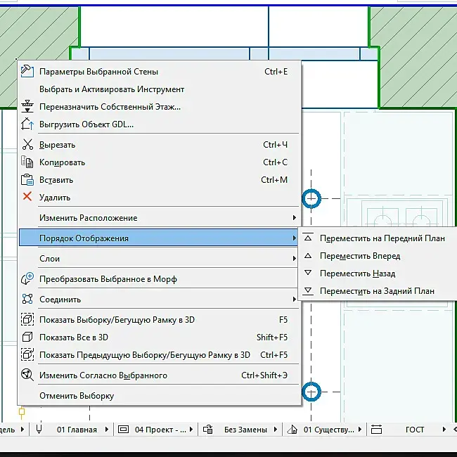 Порядок отображения Arhicad.