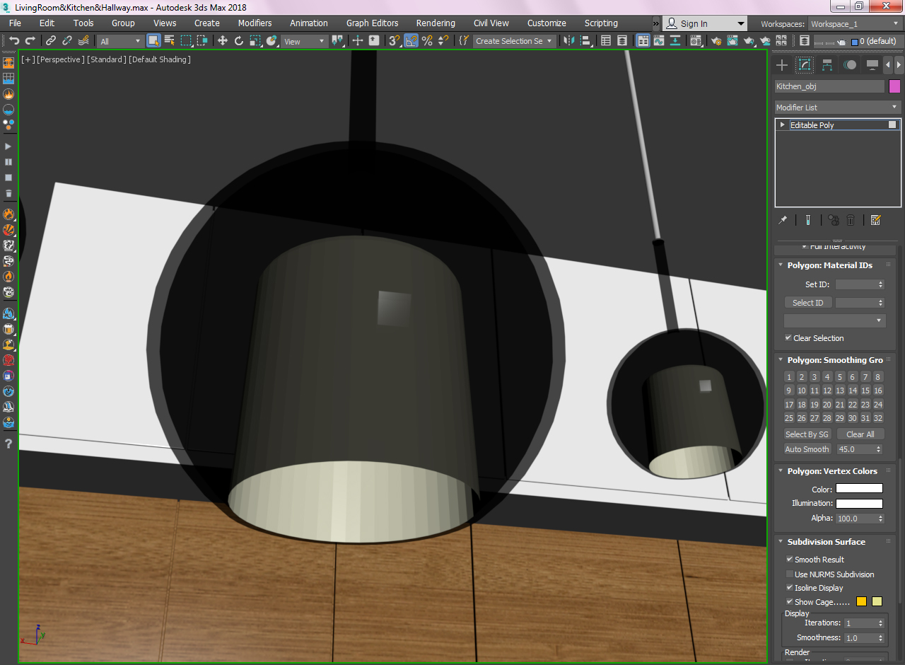 Если я буду детачить внутренние "купола" этих ламп то они авто-сглаживаются. Но потом их нужно снова аттачить. Все это надевание трусов через голову. Я хочу просто научиться сглаживать модель внутри EditPoly но если я активирую сглаживание в Smoothing Groups то это не работает.