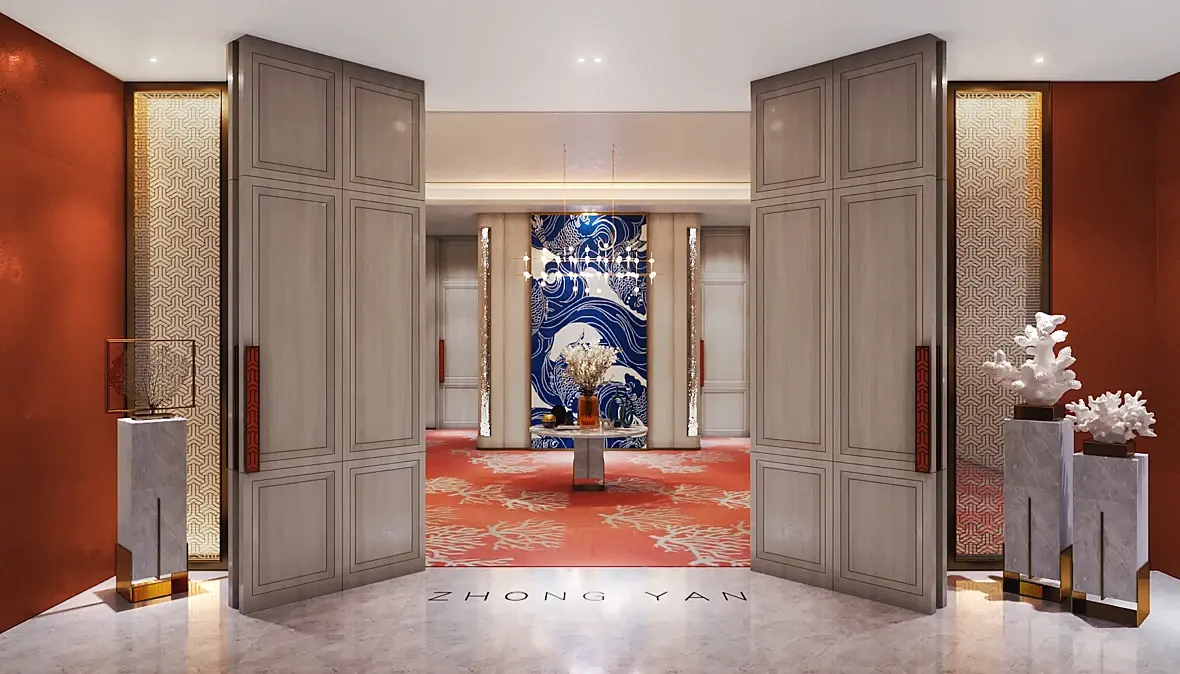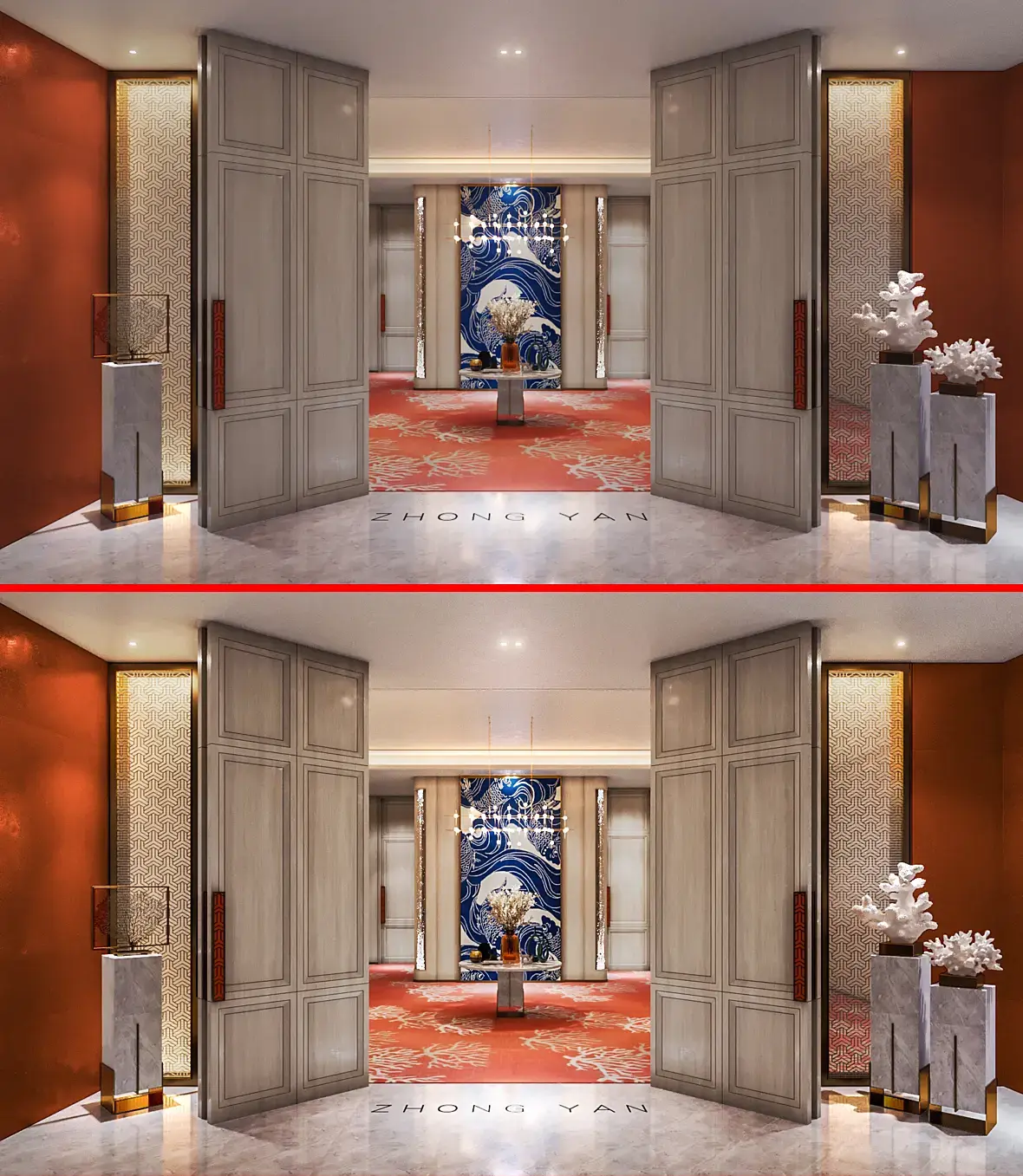 Как бы заказчик очевидно хотел вход и получил вход, это я так понял коммерческая работа а не художественная, тут никаких настроений никто не стремиться создать. Если хотите настроение делайте картину в стиле постапокалипсиса, вот там настроение, а коммерческий рендер всегда делается с целью, согласовать, сдать и получить бабло.