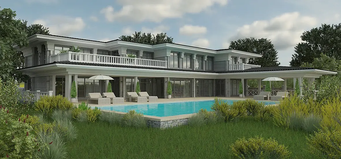 5. Вода в бассейне. Если солнечный день, то включите каустику. Воду надо делать не плейном, а боксом(на полную глубину бассейна). Это позволит показать преломления в зависимости от глубины.