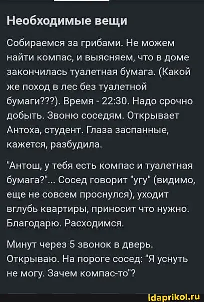 та не, в лесу туалетная бумага в принципе и не нужна (там подручных средств хватает ), а компас обязателен