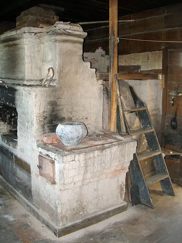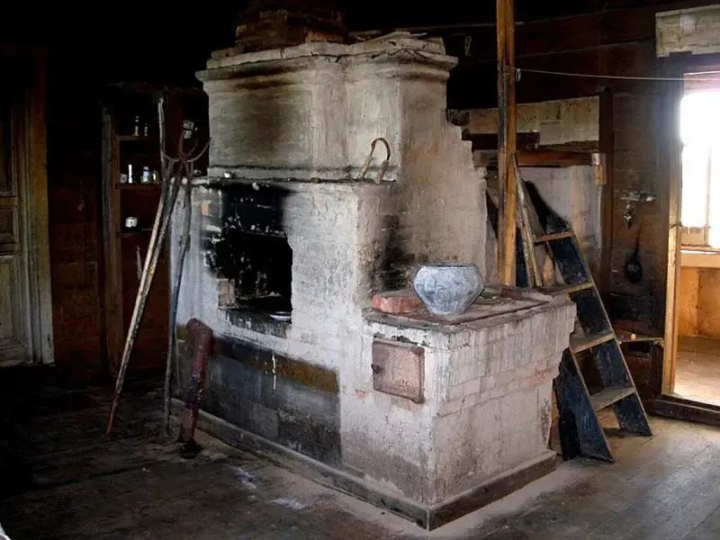 В передней же ("студия" с кухней) всегда была одна русская печь. Для приготовления еды ее же надо протапливать на полную катушку. Для самовара в этой печи был предусмотрен дополнительный канал, куда самоварная труба вставлялась, и дым выводился в общий дымоход. В советское время к русской печи добавились электрические или газовые плиты.