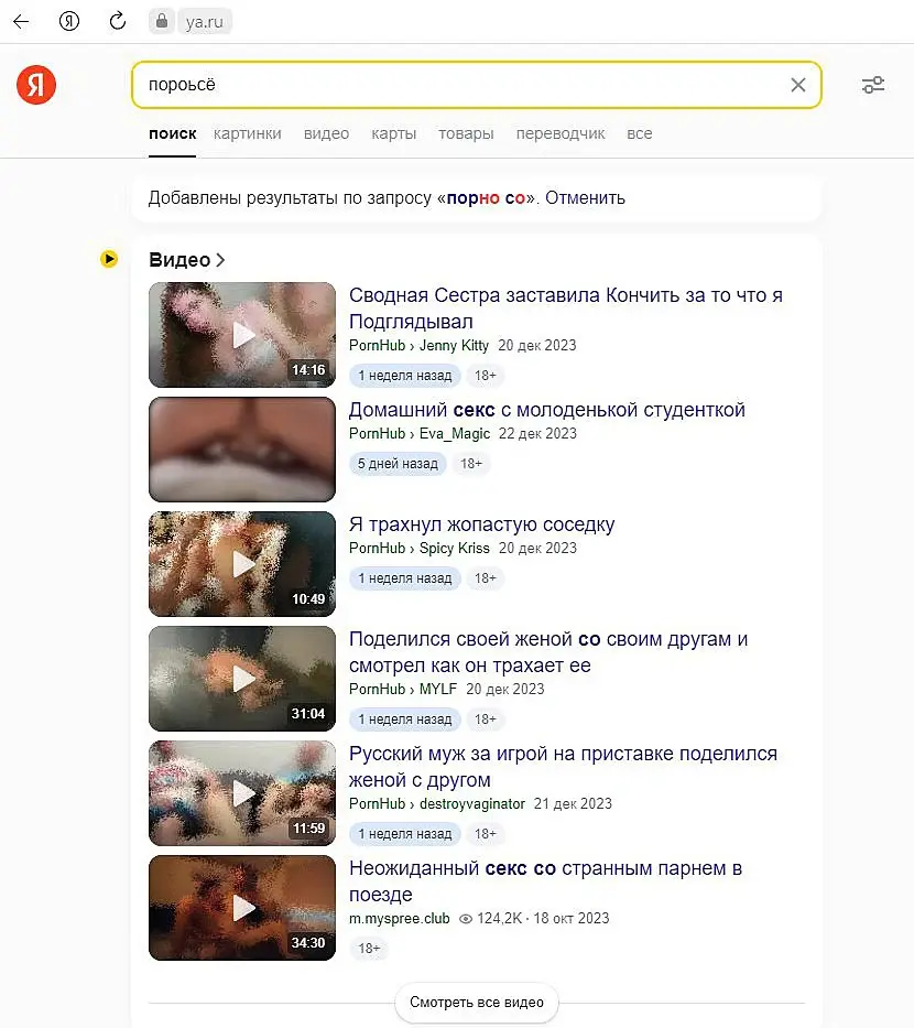 Дочка 5 лет, хотела посмотреть на яндексе поросенка Как я только подоспел. Куда яндекс смотрит??