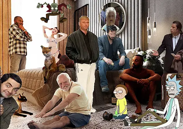 Давайте забьем всё пространство картинки, с каждого по одному любимому герою))