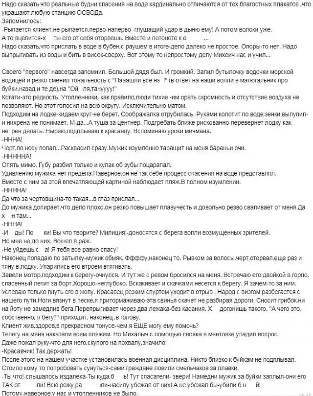 Я ваще не понимаю, как можно утонуть даже в пресной воде, если достаточно просто вдохнуть, задержать дыхание и не дёргаться? Всплывёшь, как поплавок. Про море вообще молчу.