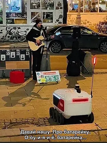 это типа они дуэтом поют, М (музыкант), Д (доставщик)