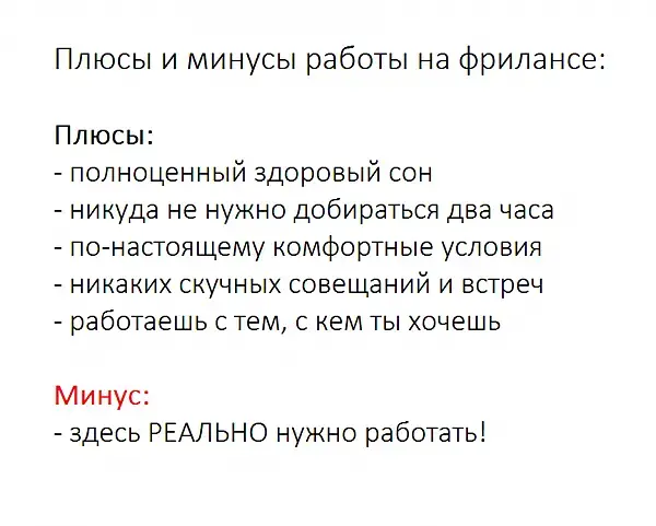 Понятно, что бывает по разному. Но вообще говоря, в коллективе всегда есть возможность прикинутся ветошью ) изобразить занятость, уйти покурить на полдня, перекинуть задачи коллегам и т.д. и т.п. При этом зарплата никуда не денется. На фрилансе этот номер не прокатит. Нет, курить тоже можно конечно, но тут чем больше куришь, тем меньше кушаешь ) увы...