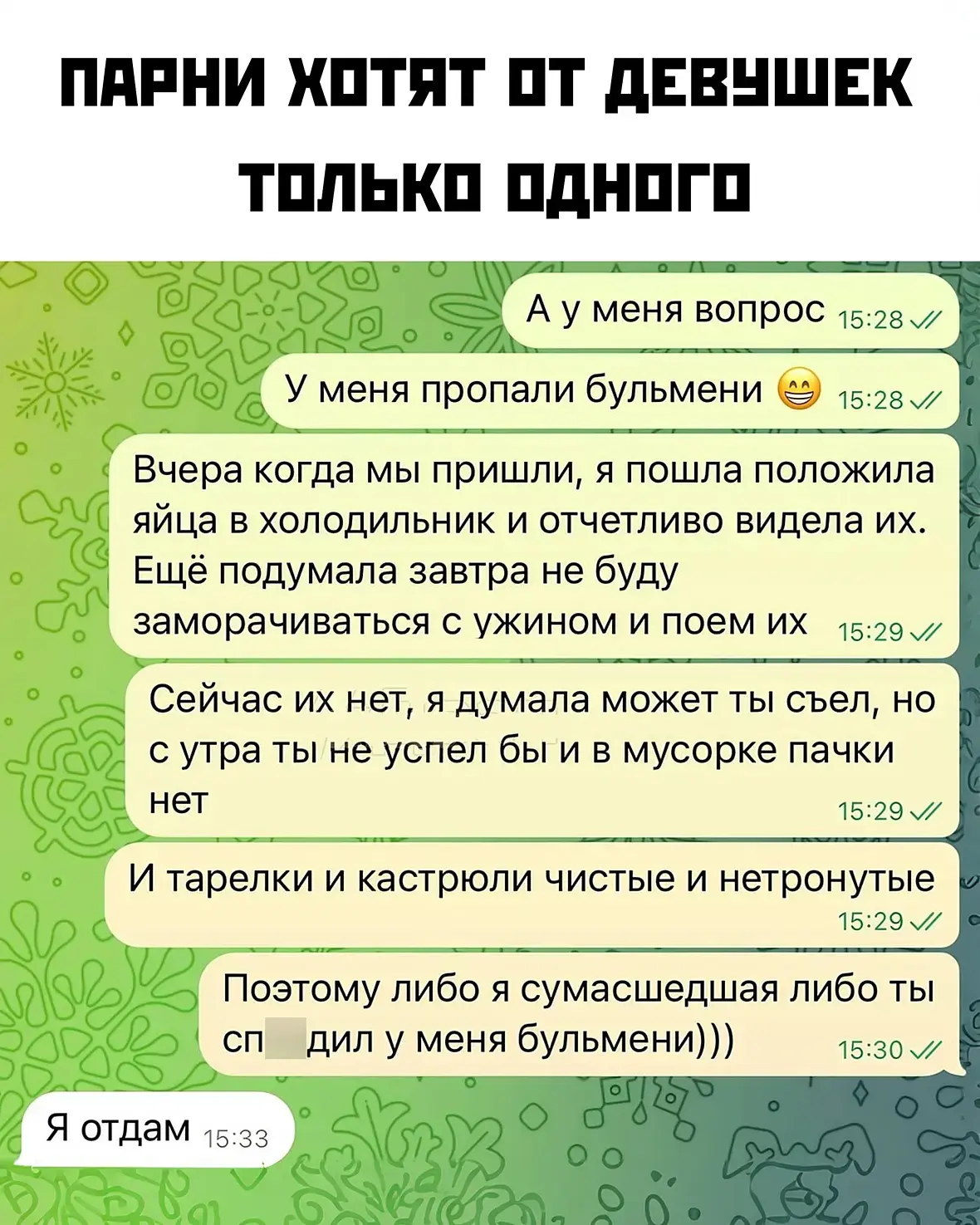 Так воды я им налил достаточно. А вот про бутылку забыл. Надо было с бутылкой приходить.