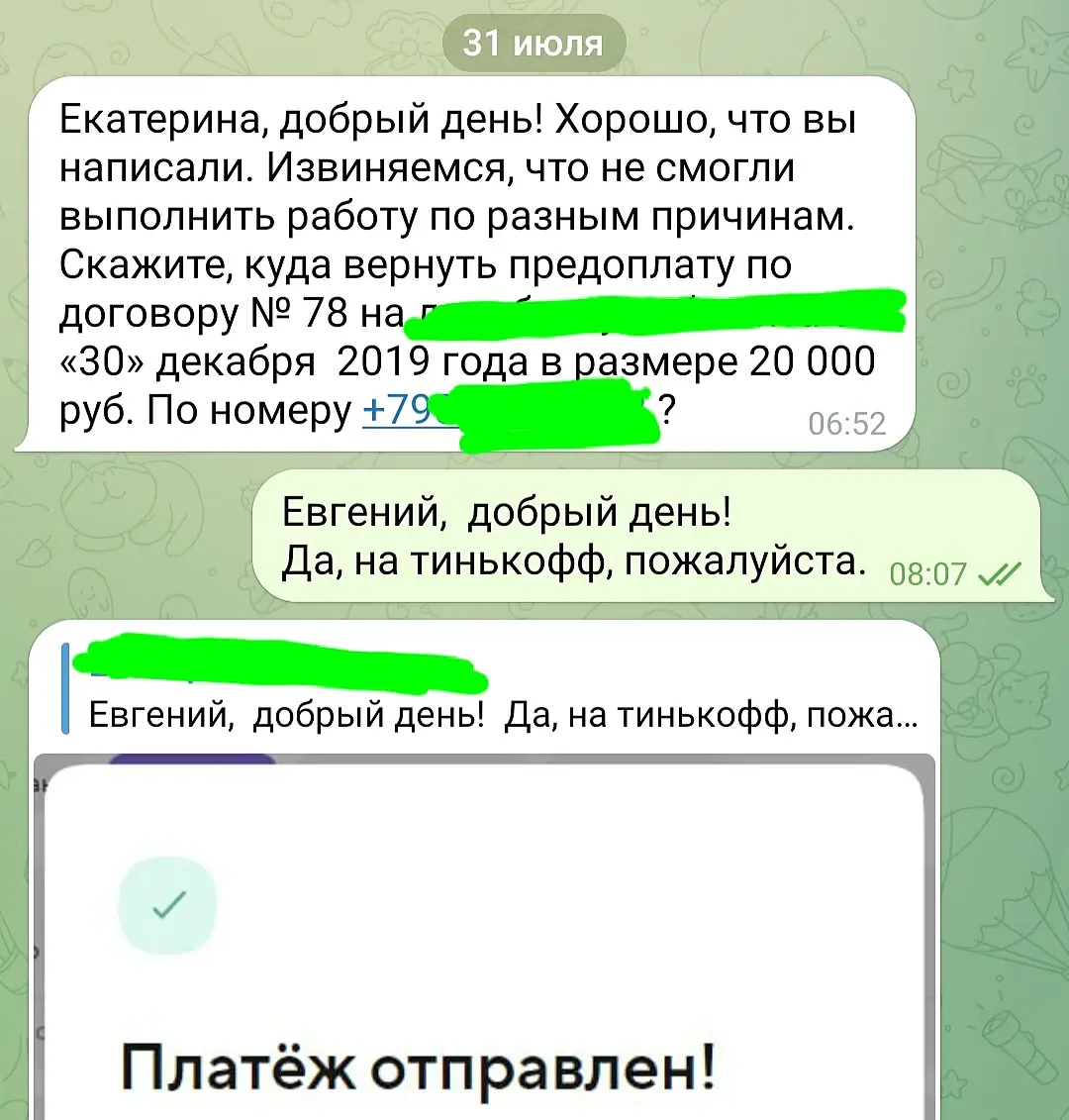 Прикиньте, прикол. Короче, ещё в 19/20 году я с сеошником работала, и чет он слился, работу начал, не доделал, деньги не вернул, сообщения игнорировал. Ладно думаю, сумма небольшая, 20к, досудебная, юрист, столько же и выйдет. А вчера в тг его сторис увидела, на Бали он, рассказывает, какой он молодец, как с клиентами много лет работает, канал свой. Я ему везде коммеетов оставила, с утра пишет, извините, куда деньги вернуть ) перевёл. А я ещё вчера духи купила, потратилась, как удачно он сторис запостил))