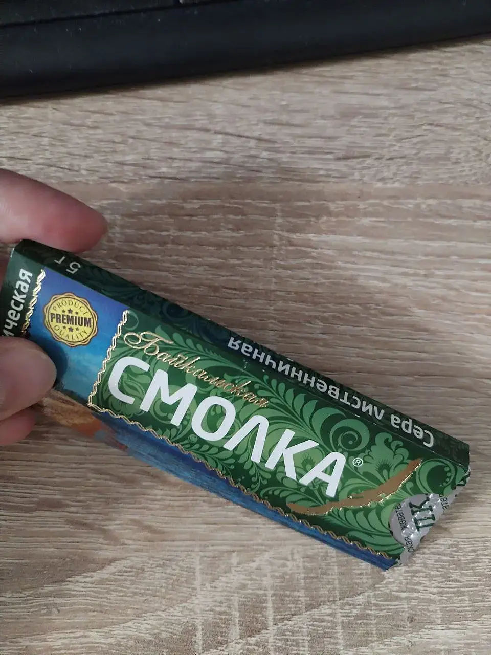 В детстве жила в таежном городе. У нас постоянно бабульки продавали. Сидели на табуретке возле деревянного ящика, а на нем в крышке с водой эти светло коричневые пластики. До сих пор для меня загадка где они ее брали и как делали. Мы ее серой называли. Постоянно жевали вместо жвачки. Ее надо сначала растопить во рту иначе крошится. Это вкус детства.