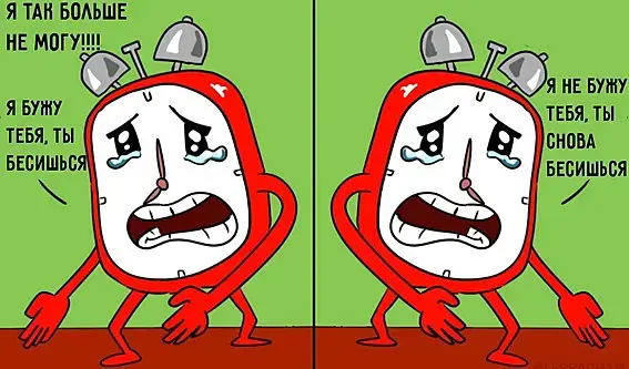 ну что вы как первый раз? видно же, что будильник тот же самый и в том же времени, только отзеркаленный :)
