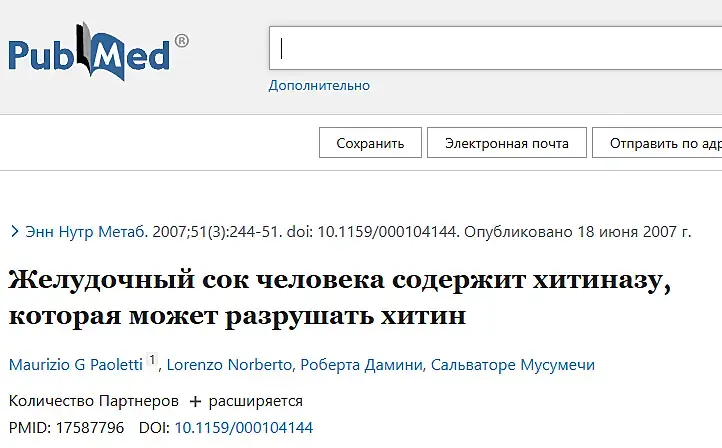 Вследствие отсутствия пищеварительного фермента хитиназы в организме млекопитающих, в том числе и человека, хитин грибов и насекомых не переваривается в желудочно-кишечном тракте, но может быть расщеплён и усвоен некоторыми микроорганизмами микрофлоры кишечника.