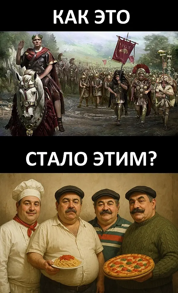 Об этом уже давно задумался. А также никак не могу найти внятное объяснение, как и когда латынь сменилась на современный итальянский. Такое впечатление, что древние римляне полностью вымерли, не оставив потомков.