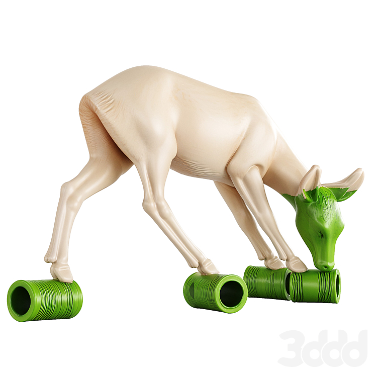 Поразительная экологическая скульптура, противопоставляющая хрупкую связь между природой и человеческими отходами. Эта концептуальная работа изображает изящного оленя, который кормится и стоит на зелёных консервных банках — тревожная метафора того, как дикая природа вынуждена адаптироваться в ландшафтах, где доминируют промышленные отходы. Контраст между натуралистичными текстурами животного и искусственной геометрией консервных банок подчёркивает темы загрязнения, выживания и насущной необходимости экологического баланса. Идеально подходит для выставок современного искусства, инсталляций на экологическую тематику и архитектурных визуализаций, ориентированных на устойчивое развитие.