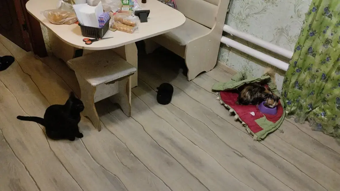 Это она тут помытая. Еще и пить сильно хотела. Настя говорит, поставила ее в тазик с водой, а она прямо из него начала хлебать и долго пила. Денежку сестре закинула. Повезет к вету на днях. Прямо на душе полегчало 🤗