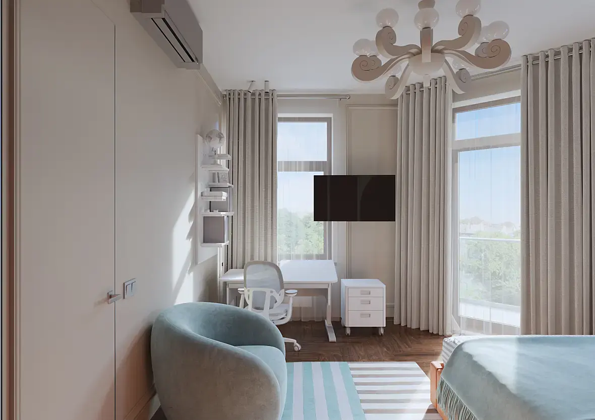 Для настройки света оставляю включенным слой "стены" настраиваю в интерактиве. Т.о. реально вижу как будет освещено помещение с уже финальным цветом стен и текстурами напольного покрытия. Дополнительно вижу как засвечиваются шторы и где если есть рисунок засвета. После подрубаю слой с мебелью, с ним когда как, но чаще всего чуть повышаются значения на 1-2 стопа у камеры. Ибо как я уже говорил мебель поглощает. А подсветка уже в конце и то чаще всего в лайтмиксе на тестовых рендерах смотрю во сколько раз надо увеличить значение и потом накидываю, а в лайтмиксе сбиваю до 1.