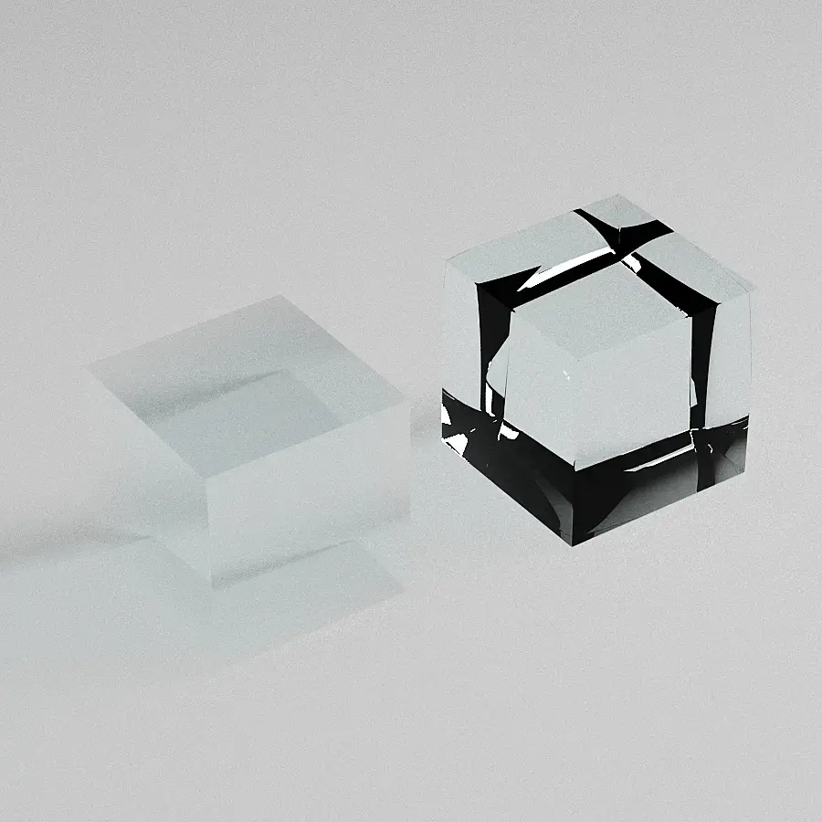 так выглядит преломление если куб немного приподнят или его грань совпадает с плейном.