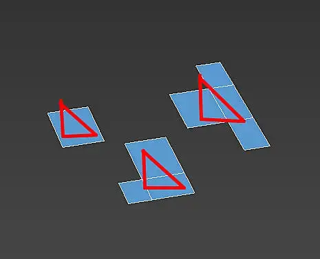 Если нужно чтобы треугольник ориентировался в пространстве перпендикулярно плоскости одного объекта (если таковая имеется) то можно распостранить с помощью chaos scatter