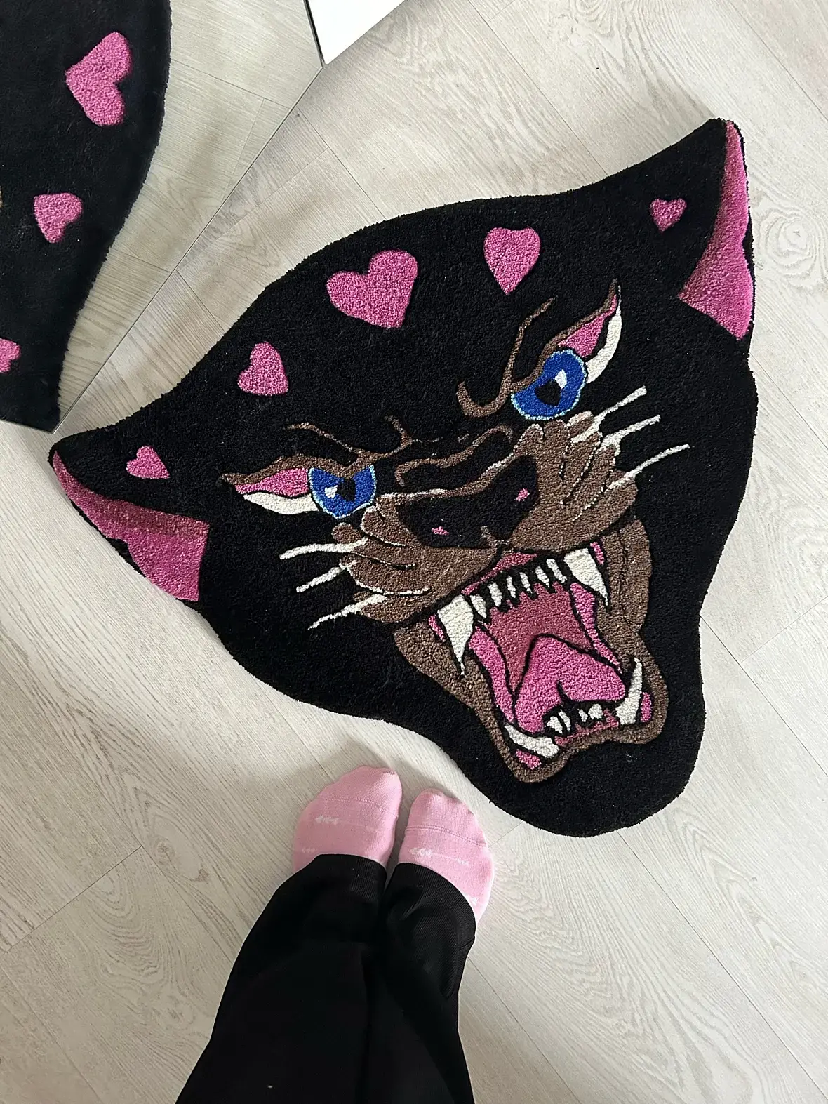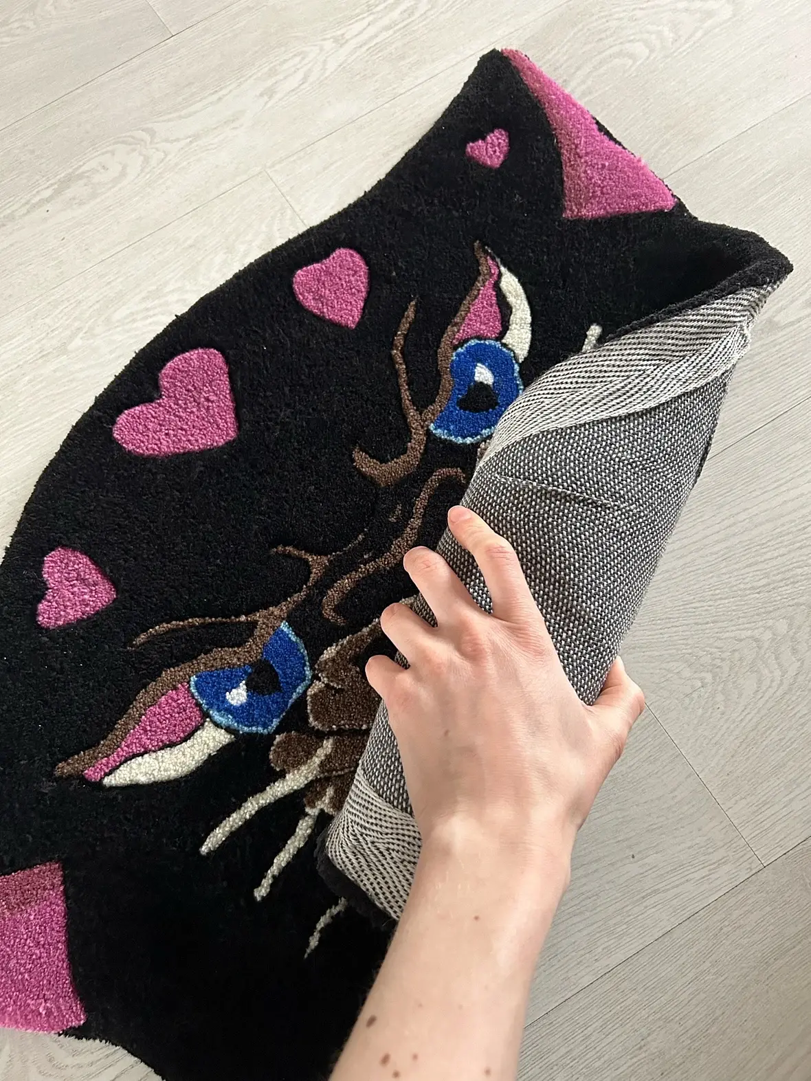 Спасибо )) Это из ниток, обычная пряжа шерсть/акрил. Забивается в специальную плотную ткань специальным пистолетом(он сразу режет нить). Как-то так, в двух словах)