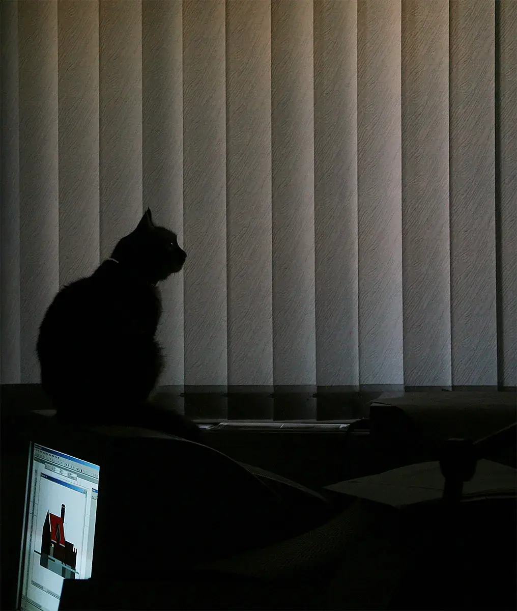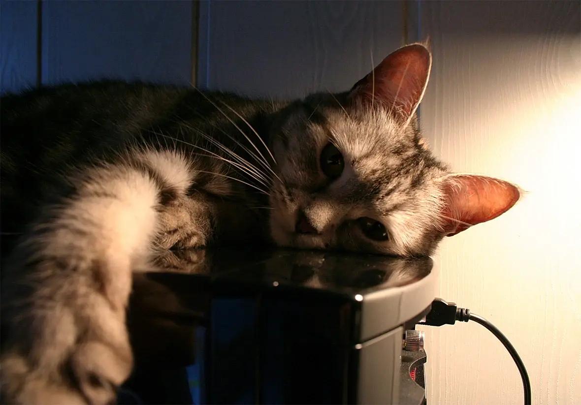 Вспомнилось: пару тысяч лет назад, когда мониторы были еще на ЭЛТ, работал в одной студии, у нас там был офисный котик по имени Виза. Любила поспать на системнике, а еще больше - на мониторе )