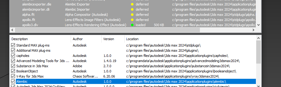 У вас установлен орнатрикс , скорее всего 8 версии или выше. У орнатрикса свой алембик, и любой ваш алембик он открывает по умолчанию как ornatrix alembic .Откройте этот алембик в максе без установленного орнатрикса и все будет ок.