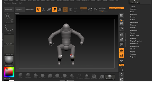 Добрый день!Подскажите пожалуйста! Создал из Zsphere болванку персонажа, после нажатия клавиши A (предпросмотр геометрии) либо через Tool-Adaptive skin-preview, объект становится черным, граней не видно, полигонов не видно. Помогите пожалуйста. Только начинаю разбираться, не могу найти решение сам, а дальше объект редактировать не получается в таком виде. Скрины приложил