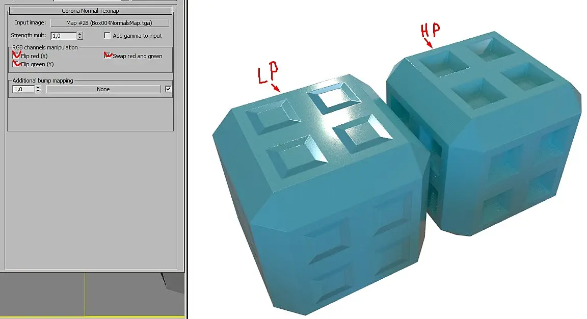 все вроде норм запеклось, но теперь вот такая бочина ...... накинул нормал на LP, но "углубления" на рендере (LP) смотрятся вообще не так как на реальной модели (HP). Как бы я не флипал и на свапил галки в настройках нормала, получается дич Add gamma to input тоже ниче особо не дает. Просто слегка меняется цвет модели. Становится чуток темнее