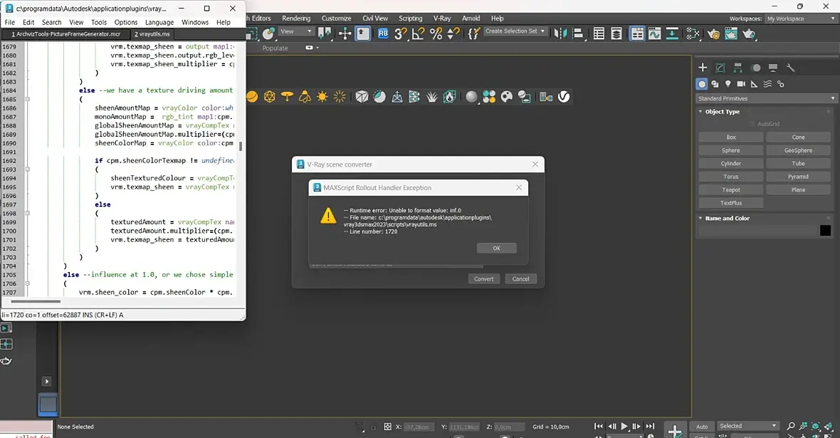 Очень хорошо, надеюсь, у тебя все хорошо.У меня проблема, и я ценю того, кто может мне помочь. Говорю вам: при смене сцены с corona на vray я получаю эту ошибку. Буду признателен, если вы мне поможете