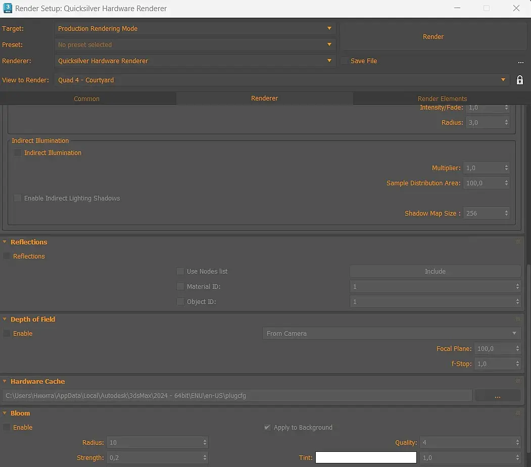 Перешел недавно с 2020 Макса на 2024. Теперь не могу пользоваться Quicksilver Renderer - Макс виснет намертво, хотя на рендер с такими же параметрами в 2020 Максе уходило от силы 20 секунд.