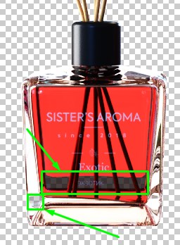 вот что получается если рендернуть просто обычное ровное стекло. Это я в шопе рисовал черные полоски в слое который находится ПОД основным рендером. Проблем вообще нет. Стекло прозрачное, полоски сквозь него видны. Но вот со стекляннм флаконом сложнее, он не хочет быть прозрачным