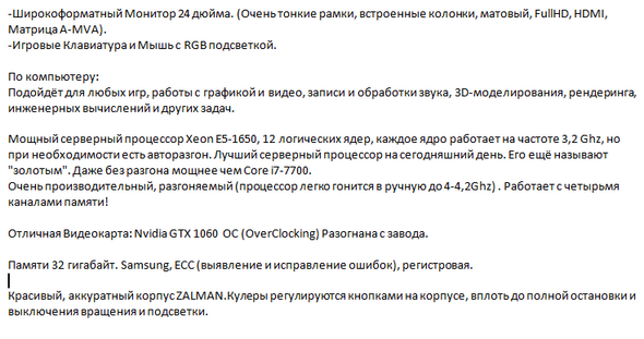 Кажется, здесь слишком много текста. Не продающий текст. По факту нужен краткий список и фото. Все характеристики кому интересно загуглят.