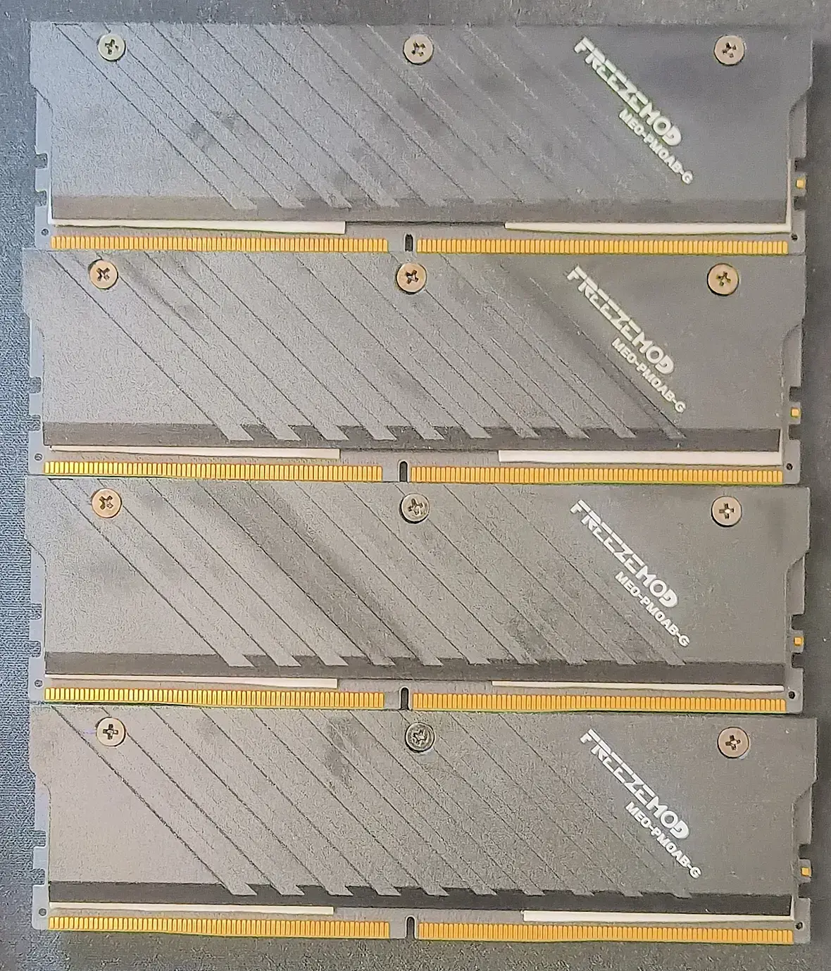 Память работает на XMP5600cl40, Ripjaws - F5-5600J4040D48GX2-RS5K x2 (радиаторы стоят от freezmod - память работала так же под водоблоком, его так же продаю по желанию) без водоблока температуры такие же как и у родных радиаторов, родные радиаторы так же сохранил. Цена: 96gb 20к