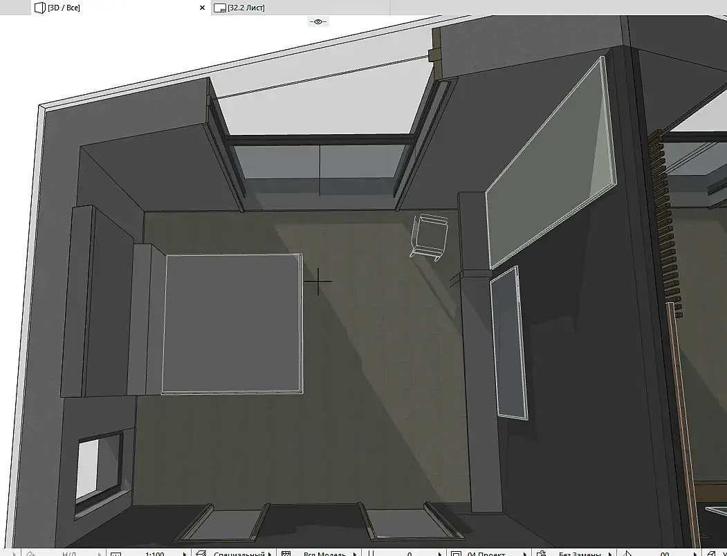 Рис 3. Ну и пример, как я презентую заказчику концепцию планировки. Каждую комнату мы утверждаем последовательно, а не весь дом сразу. Софт - Архикад.
