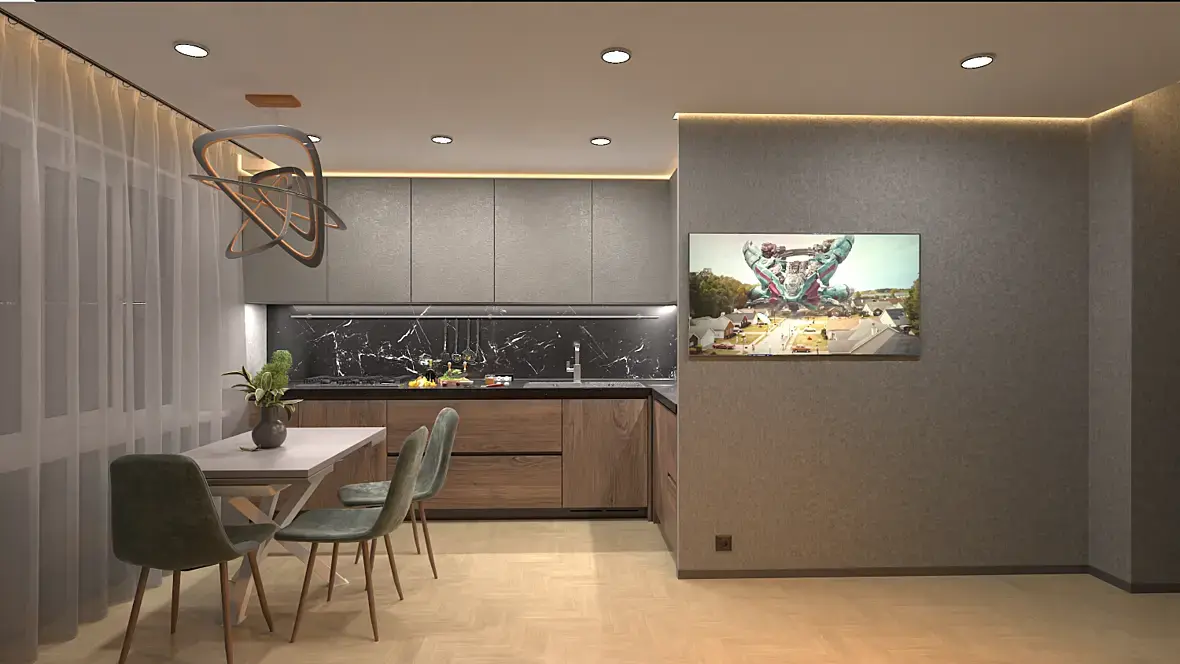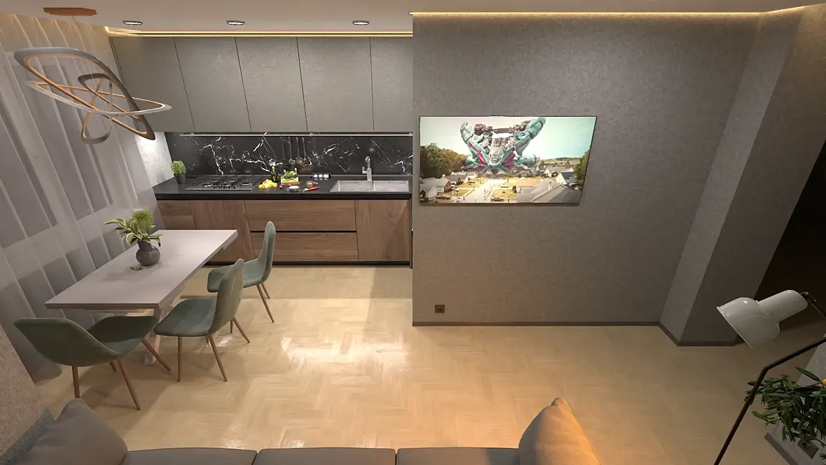 Шут с ним, с визом, но дизайн вышел криповый. Ну кому в 2020 нужен угловой письменный стол, зеленый тюль и шкаф с пылесборником на антресолях? Еще расцветки обоев конца 90х. Вам же жить там. Я отдаю себе отчет, что человек, не занимающийся дизайном с утра до вечера, не следит за тенденциями, и именно поэтому советую брать готовые решения из инета, а не выдумывать свои из существующих бесплатных моделек.