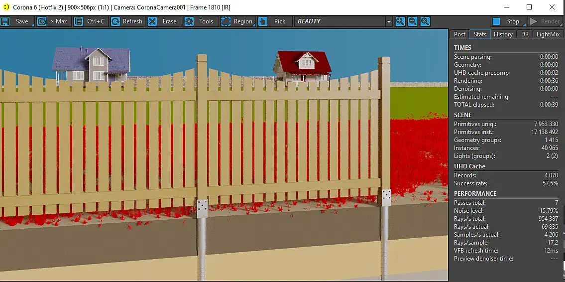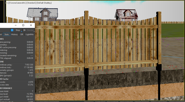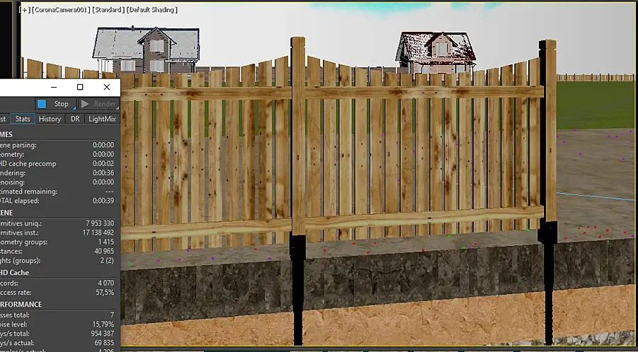 2. При рендере, в некотрых промежутках кадров пропадают материалы с некоторых (не со всех) объектов (земля, трава, деревянный забор и т.д.)