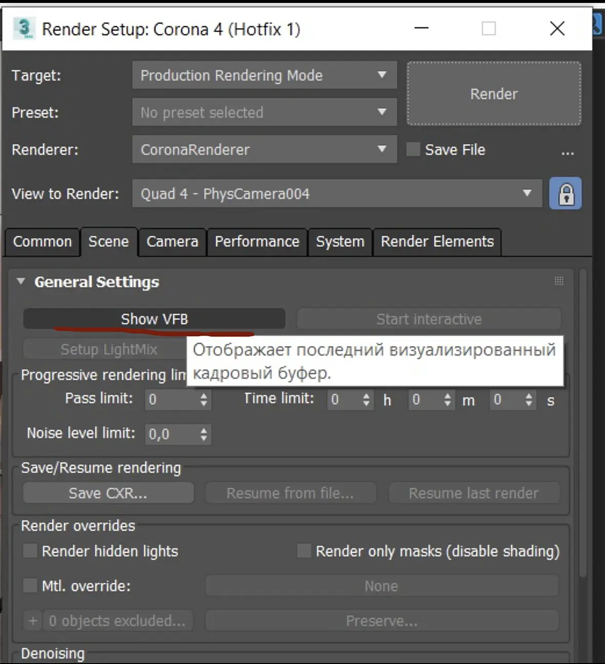 Мало ли, кому-то, как и мне, не повезло и указанные выше способы не помогли. Исходные данные: корона, винда 10. Запускаем рендер (или интерактив рендер) Alt+пробел, потом стрелка вниз, потом энтер, а потом зажимаем стрелка вправо (10 секунд), если окошко не появилось, то зажимаем стрелку влево на 20 секунд. Мне помогло.