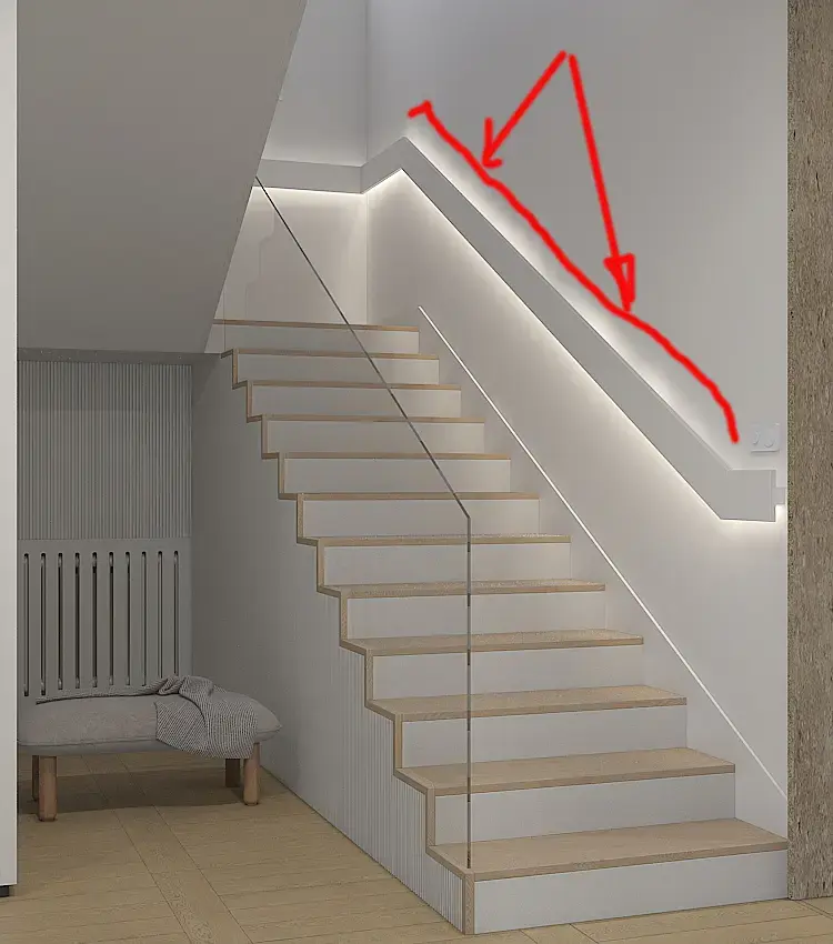 Помогите найти решение. У поручня снизу подсветка в виде VRayLight. На рендре, сверху, свет просачивается сквозь поручень. Пробовал по разному устранить проблему. И накручиванием irradiance map и detail enhancement включал и делал поручень одним объектом со стеной.. ничего не помогает(.