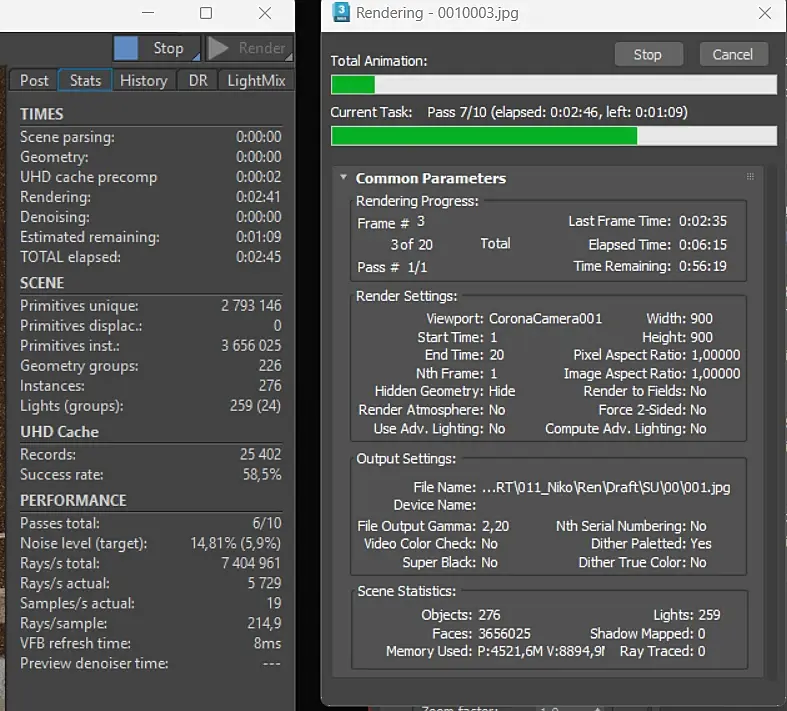Rendering это не фотовспышка камеры. Это длительный и температурный процесс, зависящий от насыщенности сцены, проработанности материалов, (от Bump и Displace), накрученности настроек качества рендер-движка(и их баланса) и собственно ЦП.