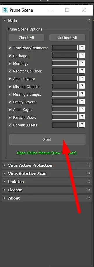 установите Prune Scene