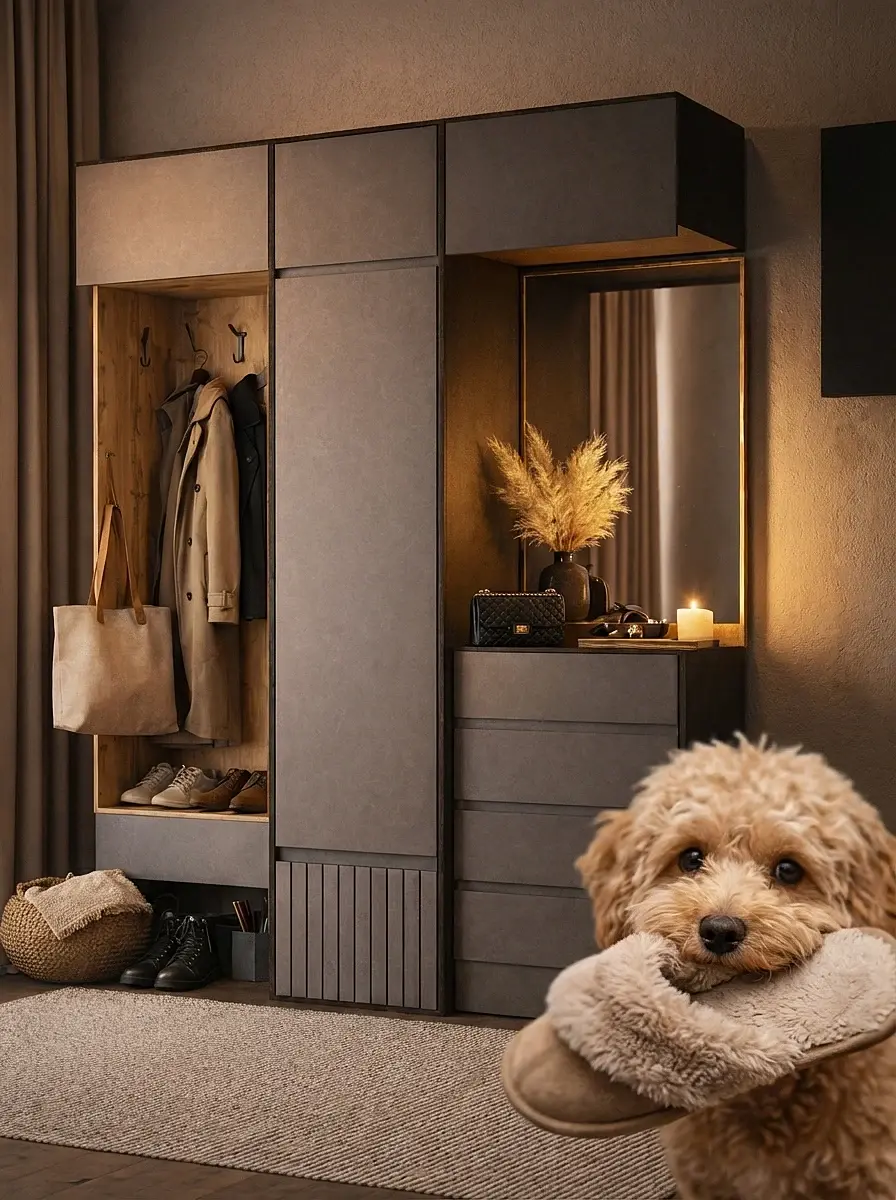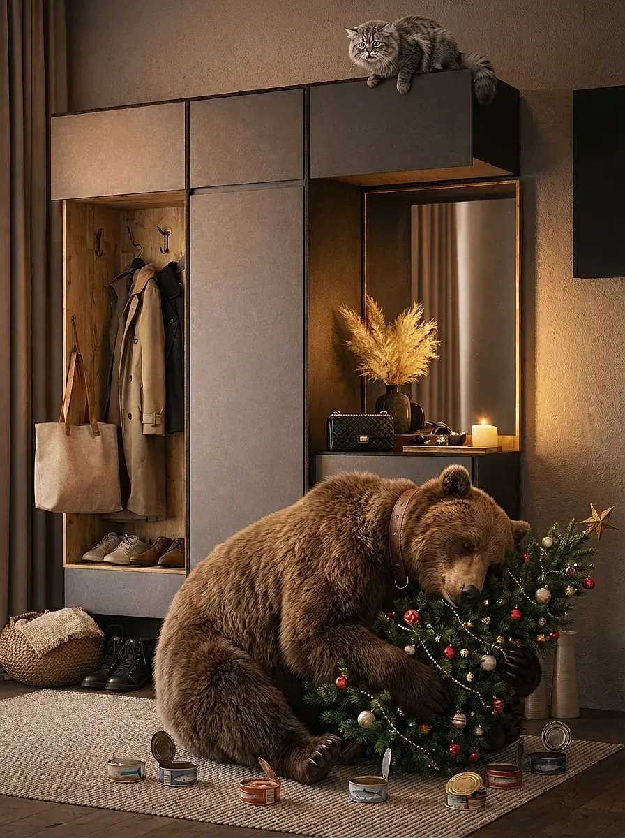 Ну, художественная ценность так себе. Да и вообще странное расположение мебели для прихожей - вешалка для одежды и полка для обуви у окна (не думаю, что там входная дверь).