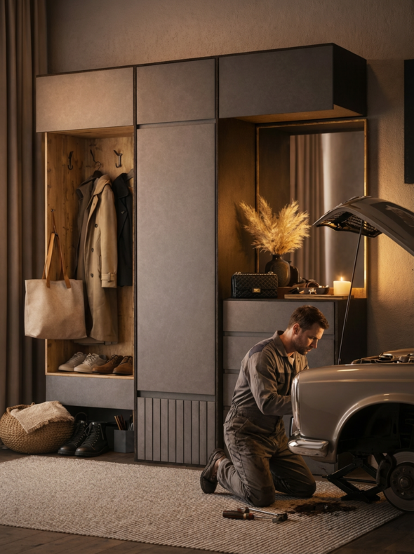 Ну, художественная ценность так себе. Да и вообще странное расположение мебели для прихожей - вешалка для одежды и полка для обуви у окна (не думаю, что там входная дверь).