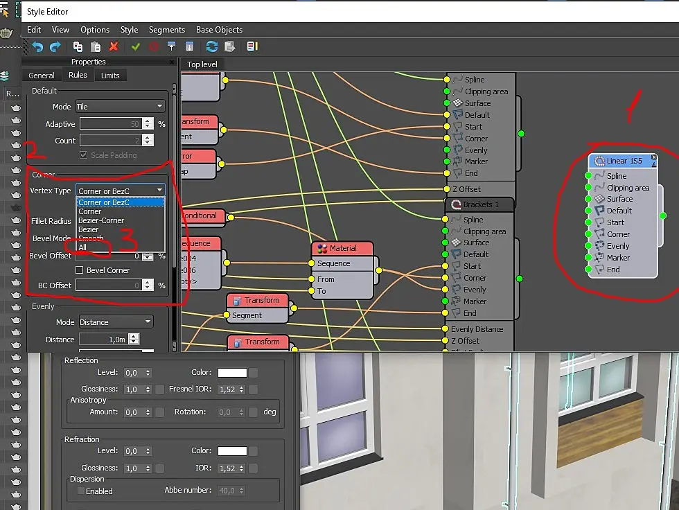 Иногда такое бывает. Можно потырка режимы бевела углов в генераторе.Поставить Symmetry например