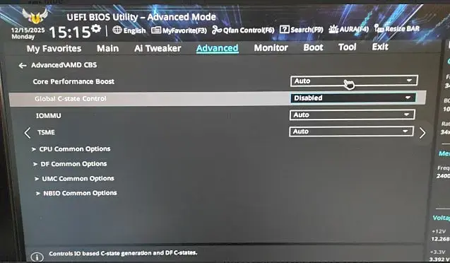 Asus Tuf Gaming B550 Global C-state control вот тут находится. Выключил, посмотрю погоняю. Там ещё дочерта параметров, надо сперва хелп обчитаться будет, прежде чем трогать. Пасиб за наводку.