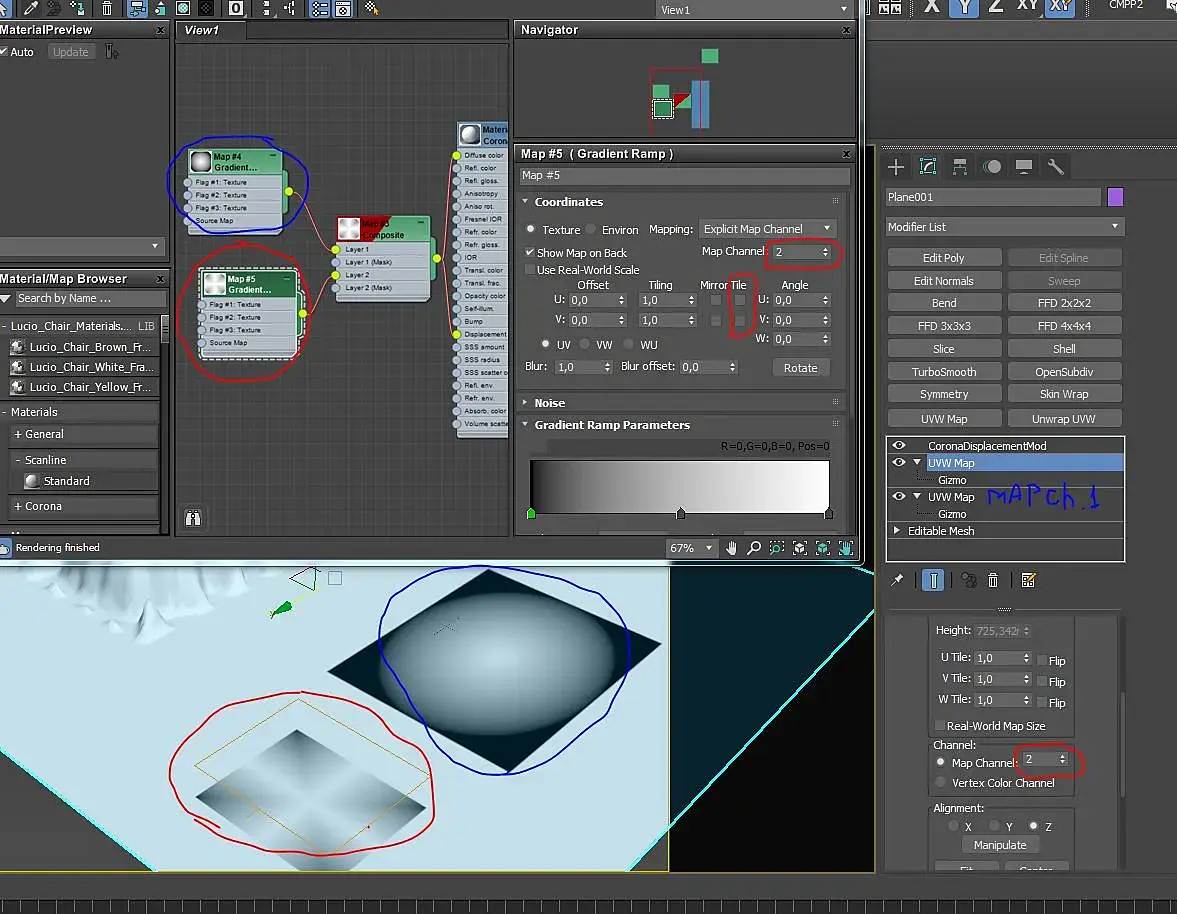 А еще можно просто тайлинг отключить у карт неровностей, назначить им разные каналы и собрать их через карту Composite. Потом с помощью разных каналов в UVW Map назначать место куда будет проецироваться неровность.