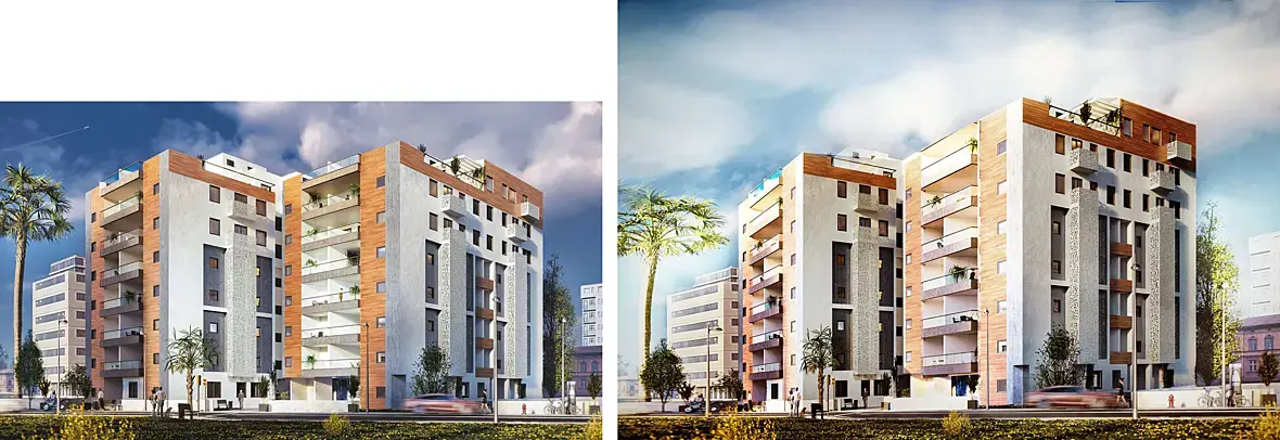 Тут почти всё отлично. Может я бы кверху чуть притемнил и подсинил стекло на башне, а то очень белёсое.
