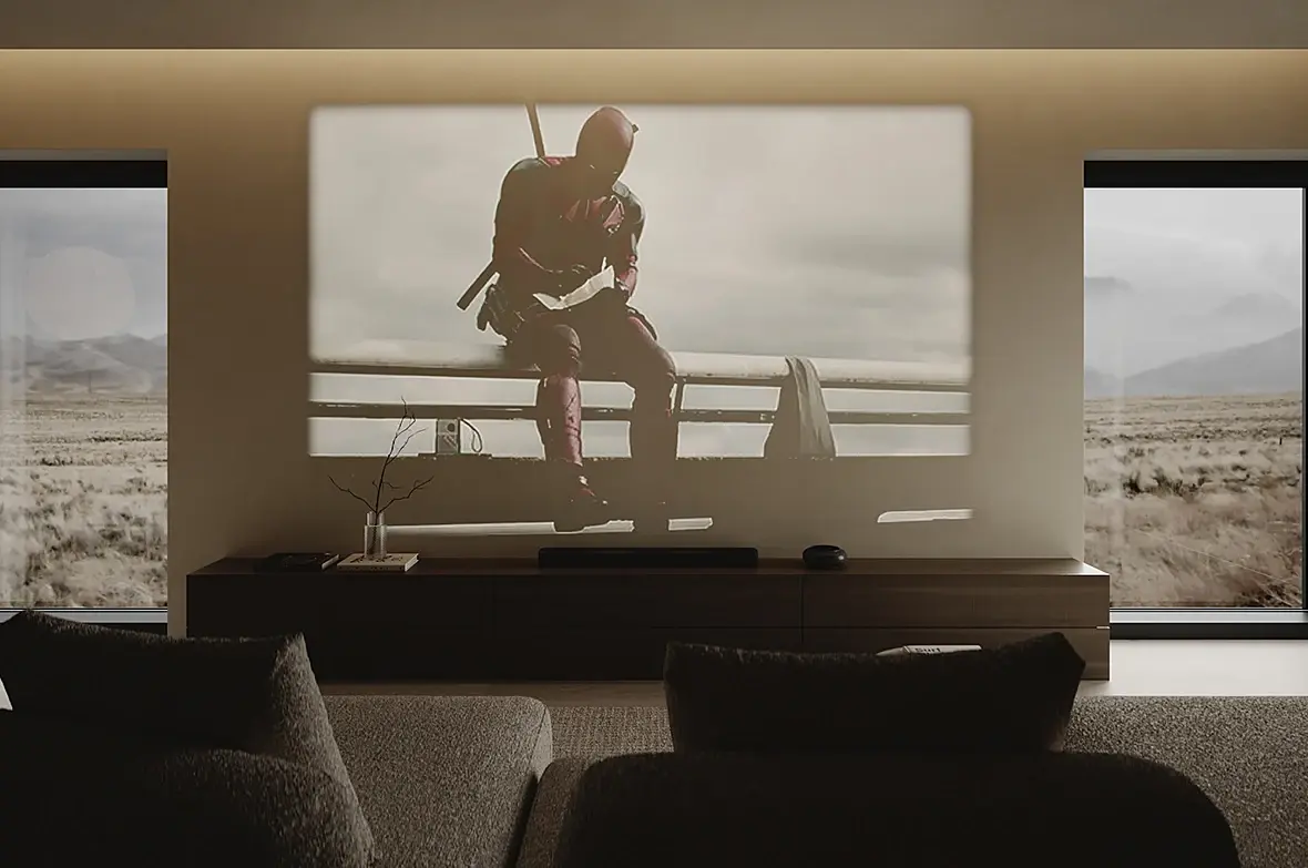 Я по-старинке проекции делаю через источник света - Target spot. Если кратко, то ставится тип Rectangle, настраивается Hotspot - falloff значения (все в свитке Spotlight parameters). Эти параметры как раз отвечают за этот плавный переход