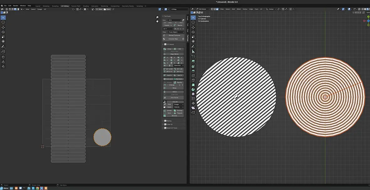 Если уже получилось, то хорошо, но, я думаю, что лучше такой объект делать изначально так, чтобы развертка была нужной. Как вариант используя loft или sweep. В качестве пути - окружность, объект - линия. Вот у меня на скриншоте свипом. Ну и да, не забыть отметить галку generate mapping coordinates